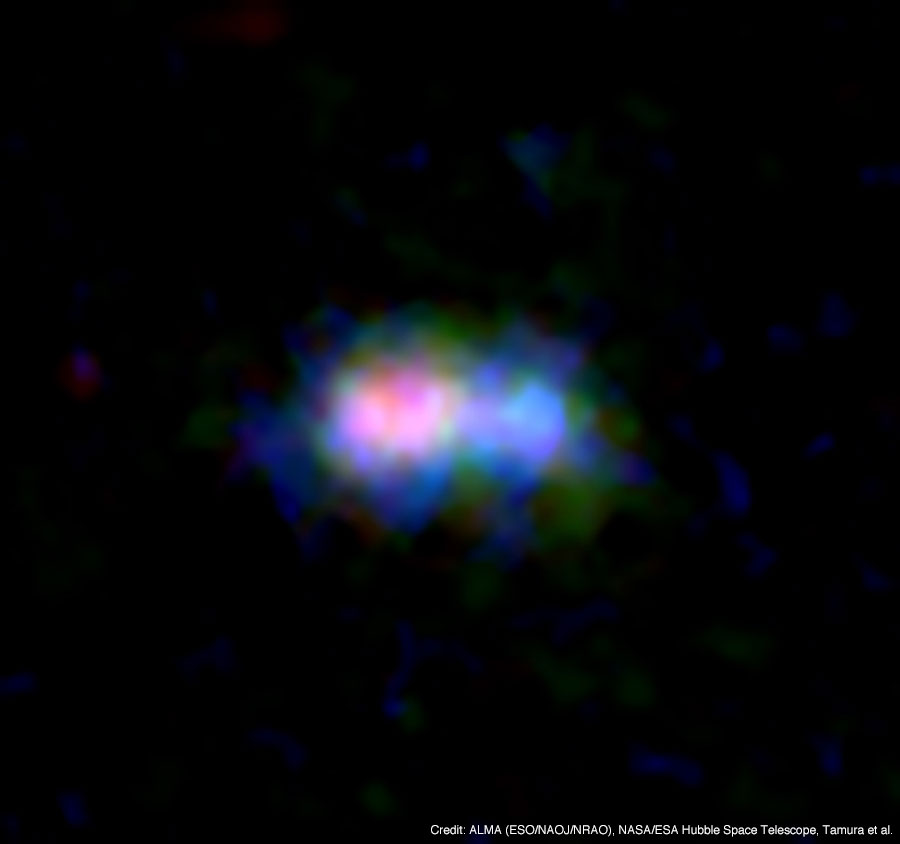 *右上図は、アルマ望遠鏡で観測された「132億年前の宇宙に存在した大量の塵 ~宇宙初期の星形成史をさかのぼる~」というタイトルの図。(