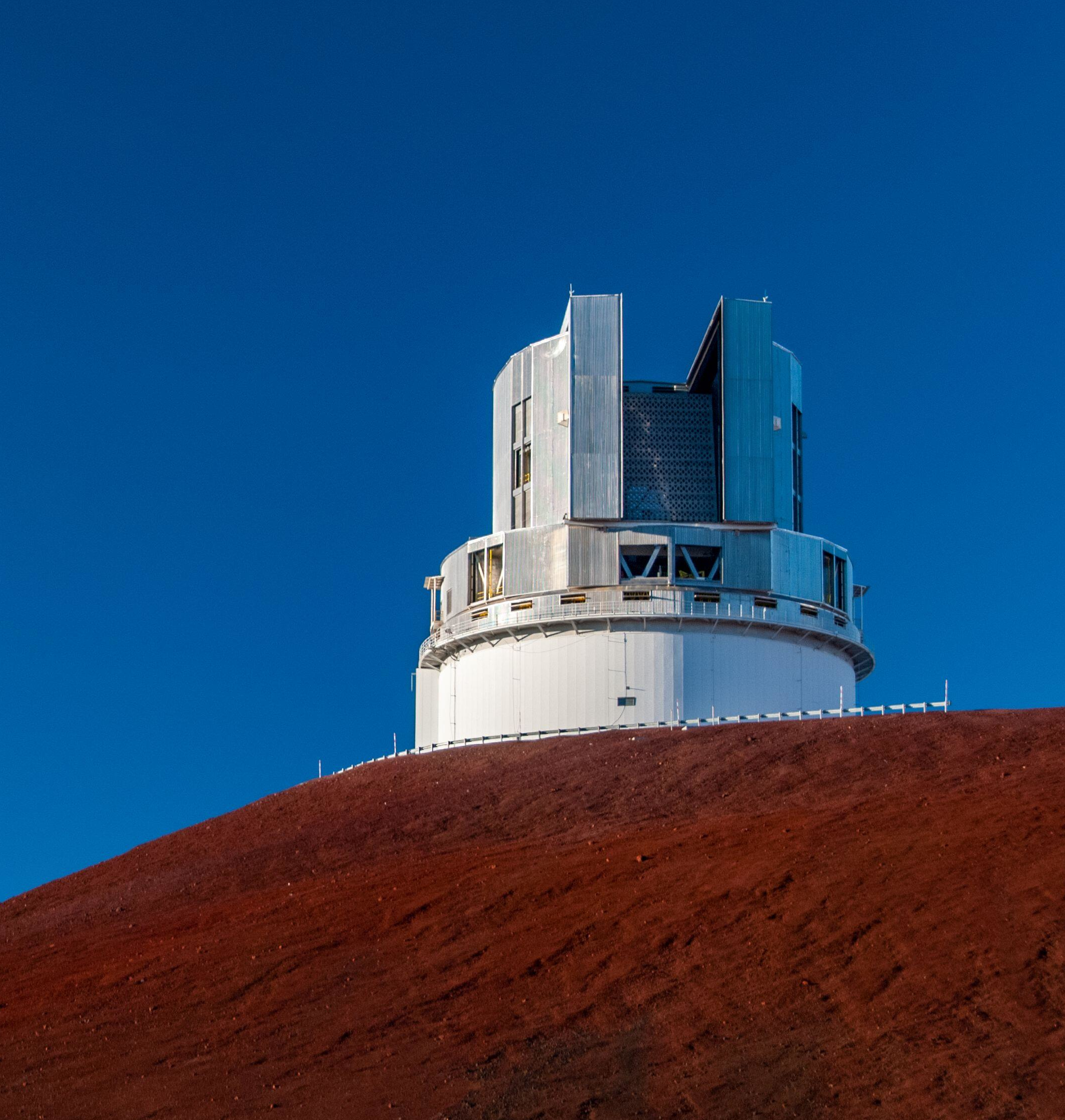 標高約4200メートルのハワイ島マウナケア山頂域は、大気が安定し晴天率が高く、人工光の影響もほとんどない、世界有数の天文観測地です。その地で1999年1月、日本の国立天文台が運用する口径8.2メートルの光学赤外線望遠鏡「すばる望遠鏡」が初観測(ファーストライト)を迎えました。その後、遠方の銀河を発見したり、惑星が誕生している現場や太陽系外惑星を直接写真に収めたり、太陽系外縁部の小天体を発見したり、数々の観測成果を生み出してきました。