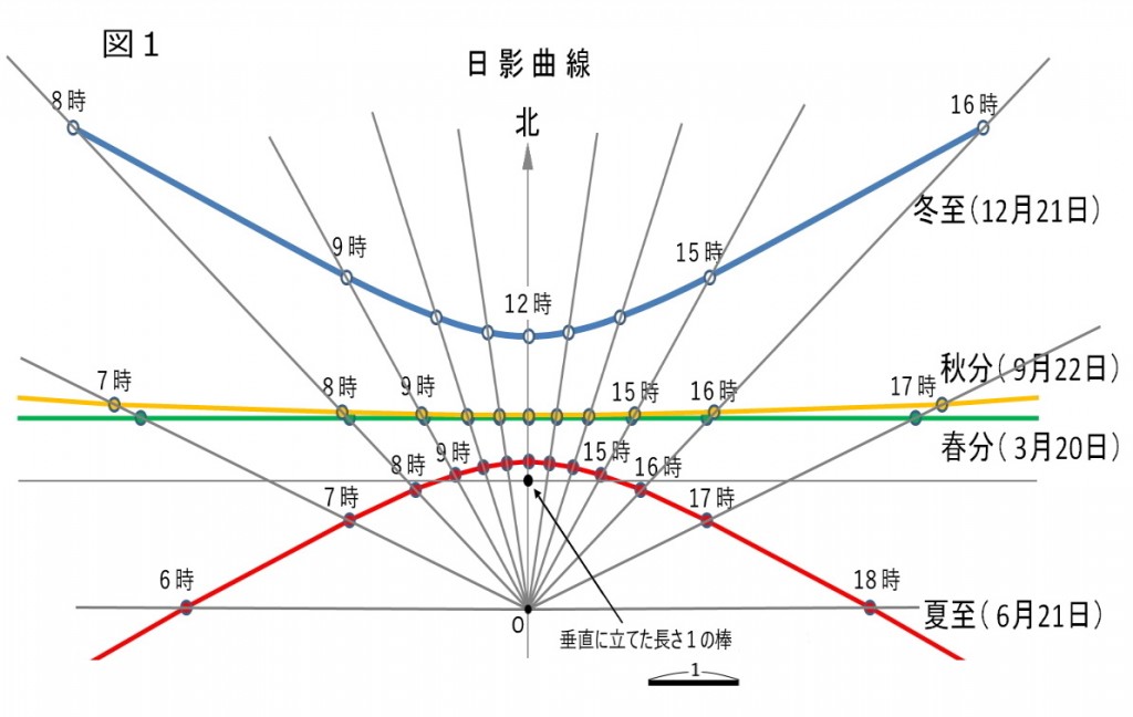→ 地面に棒を立て、影の動きで調べる。(右図)