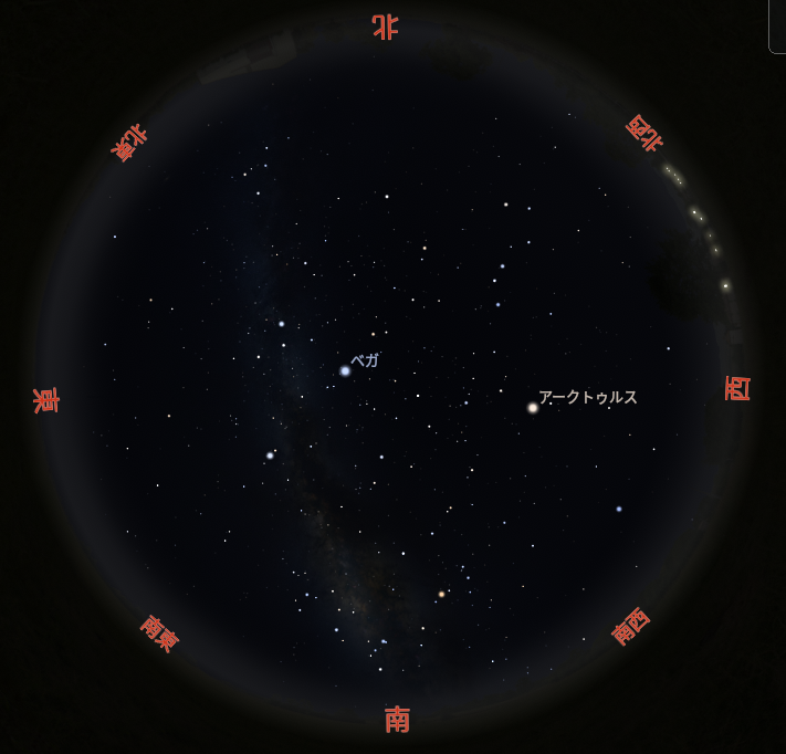 7月19日、夜9時 *春の大曲線と夏の大三角形